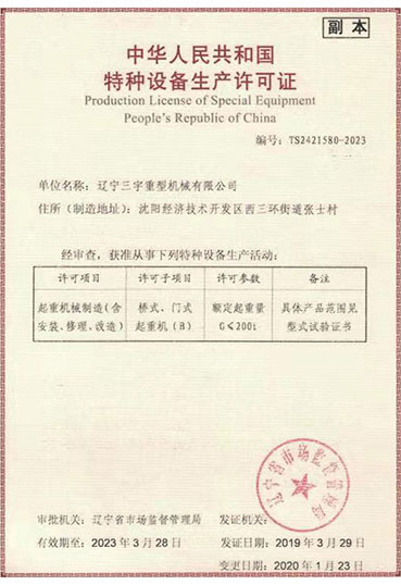 - 三宇人將以“創(chuàng)三宇國際品牌,興中華民族工業(yè)”為己任,努力奮斗,不懈奮斗,加快發(fā)展,繼續(xù)譜寫中國起重機械制造史上的新篇章。