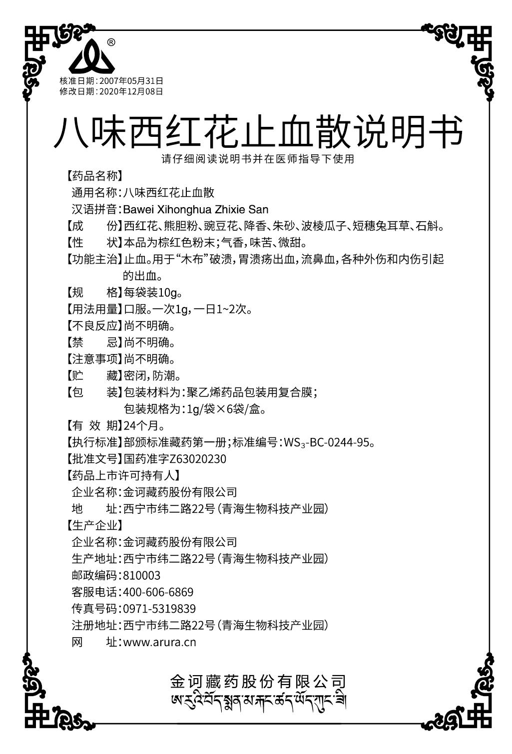 八味西紅花止血散